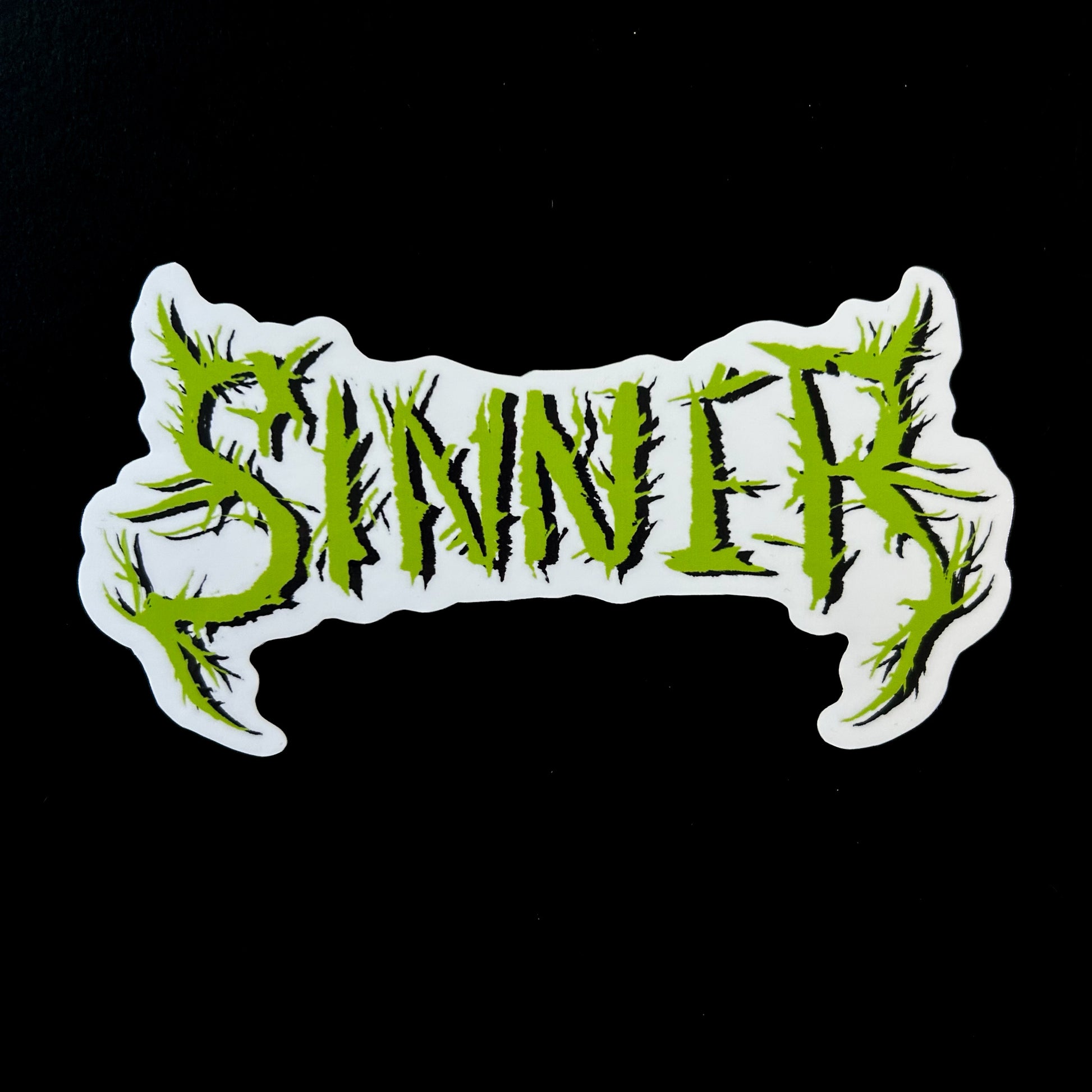 SINNER metal logo sticker.